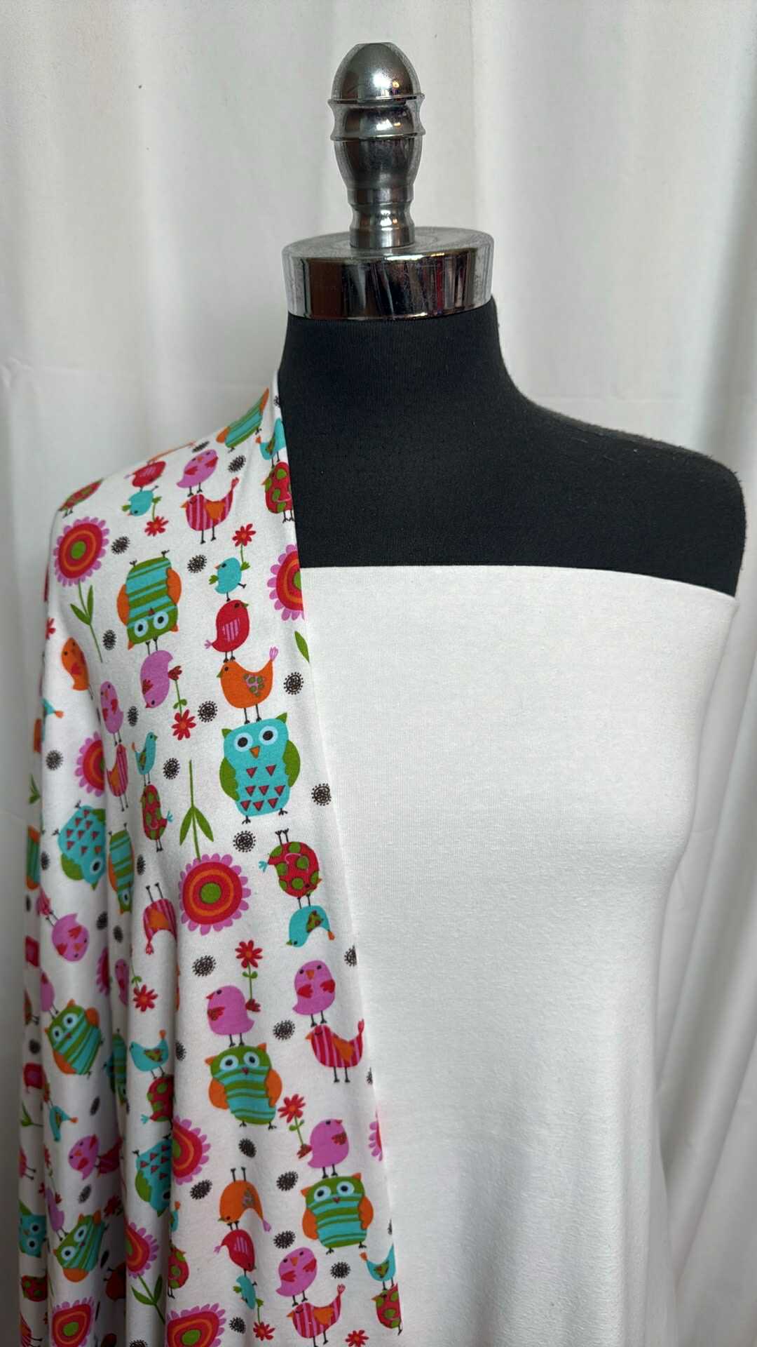 WHITE/OWLS BUNDLE : 2YD White Cotton Rib & 1.5YD Owls Cotton Rib : A27926