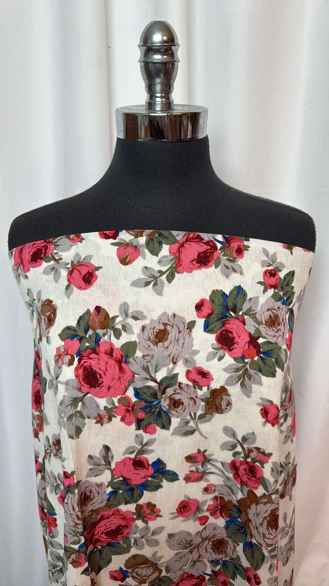 Ivory/Pink/Grey Floral - Crinkle Rayon Woven - 2 Yard Cut