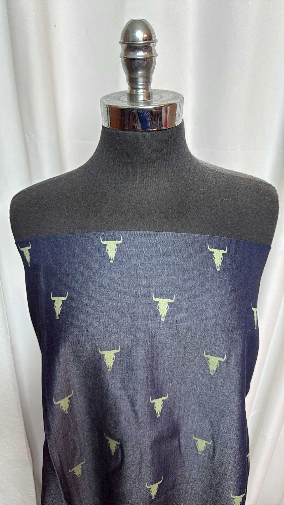 Bull Skull - Mid/Light Weight Denim Woven - 2 Yard Cut