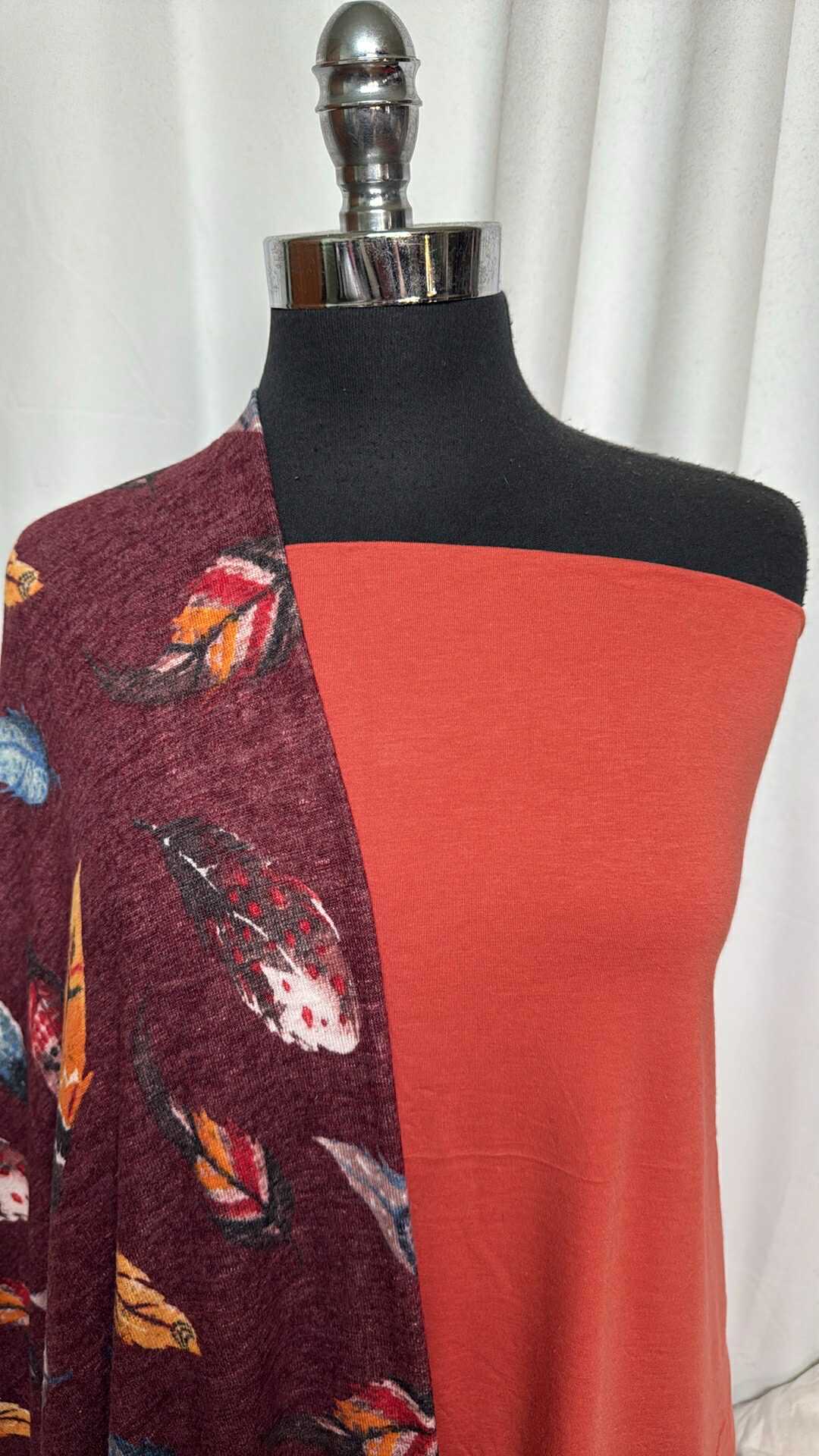 BURGUNDY FEATHERS BUNDLE : 1.5YD Solid C/P/S & 2YD Burgundy Feathers Brushed Hacci SK : A28694