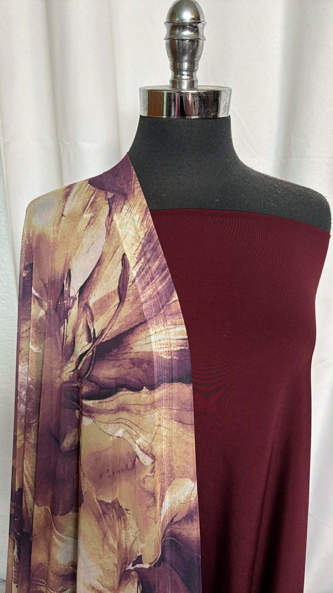EGGPLANT/FLORAL MESH BUNDLE : 2YD Eggplant Venezia (Read Descr.) & 2.5YD Floral Stretch Mesh : A29601