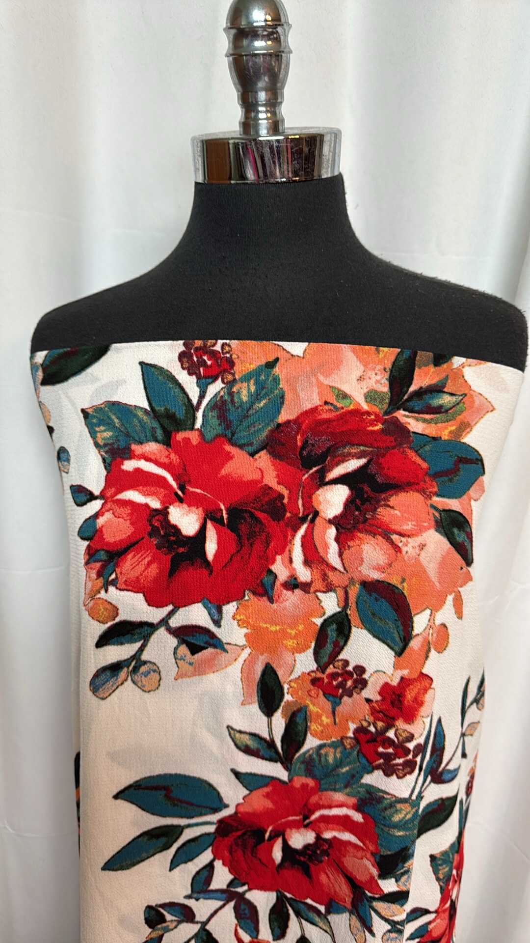 Ivory Floral - Bubble Crepe 100% Poly Woven - 2 Yard Cut