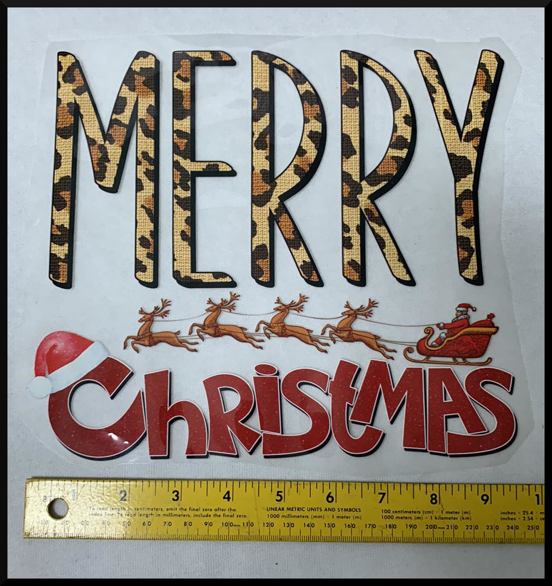 Merry Christmas Sleigh (T17) - Iron On Decal - Sold Individually