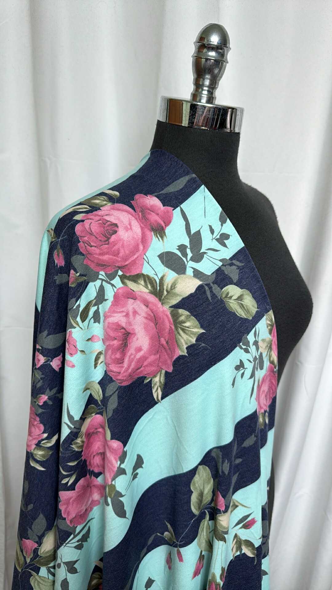 Navy/Blue Wide Stripe/Floral - PRS French Terry - 2 Yard Cut