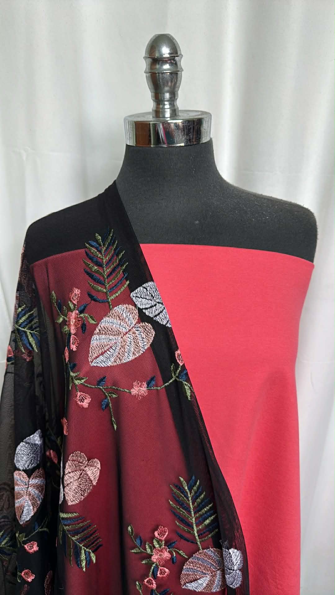 PINK/FLORAL MESH BUNDLE : 1.5YD Solid Peached PF & 2YD Floral Embroidered Mesh : A29365