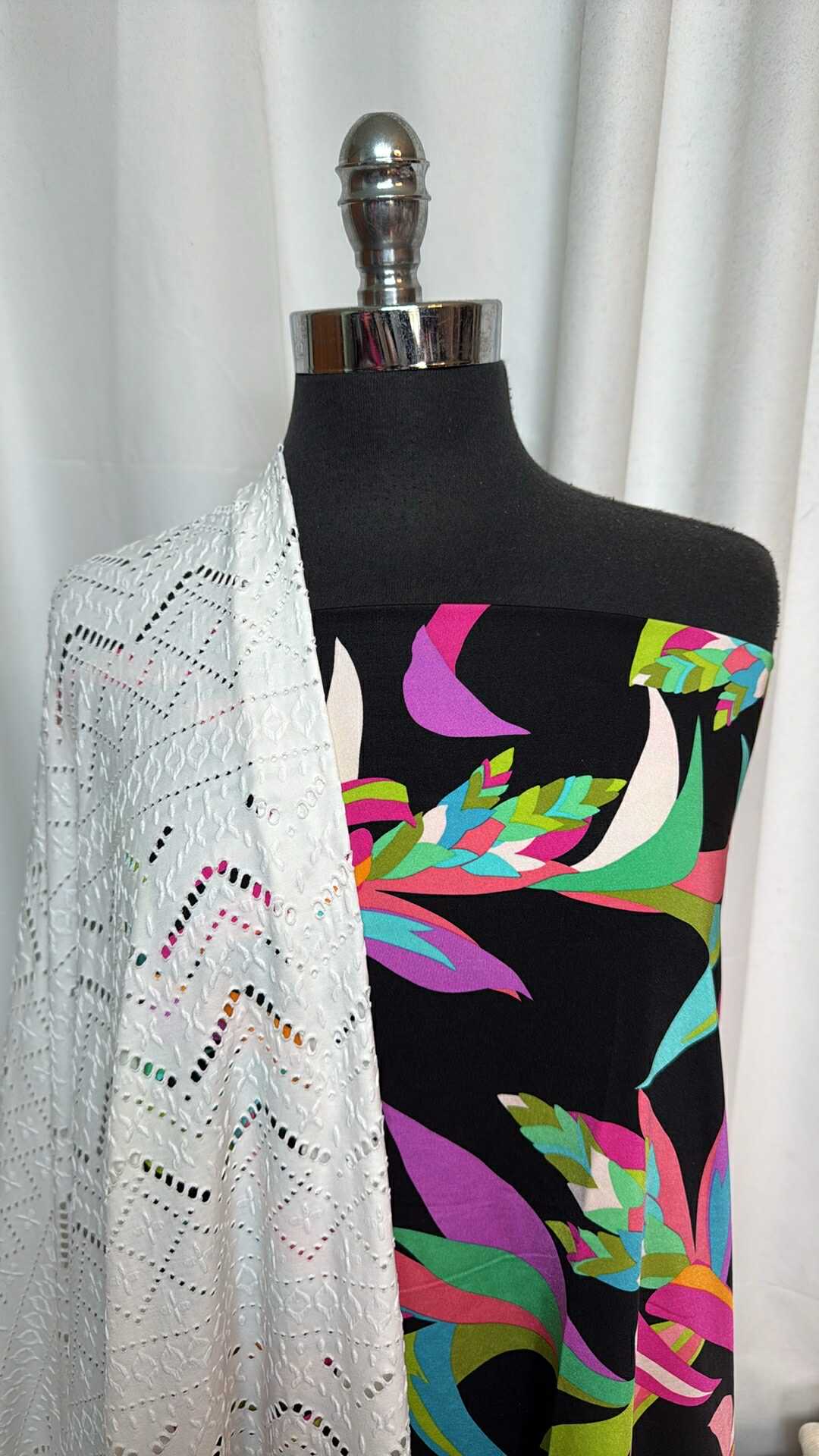 WHITE EYELET/BLACK FLORAL BUNDLE : 1.5YD Black Floral N/S & 2YD White Eyelet N/S : A28821